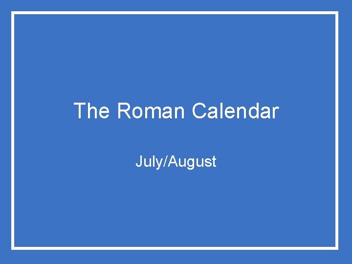 The Roman Calendar Used A System Of Months, And Special Days In Each Month.